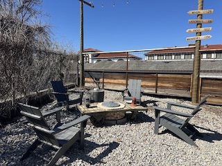 Natural gas fireplace, keyless entry, and private outdoor patio with fire pits