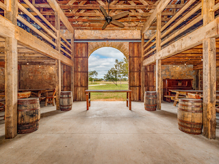 Improvements on the property add immediate value and functionality. There are multiple 250-amp RV hookups, electrical access points throughout the property, including the stage area and rock barn, as well as installed ceiling fans. The rock barn has been upgraded with a poured concrete floor, electrical switches, and custom-built barn doors crafted from original wood planks from the structure’s second level—adding both character and history.