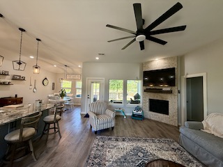 Welcome to your dream home in the prestigious Hideout Golf Club & Resort at Lake Brownwood—where luxury living meets resort-style amenities. This custom-built 3-bedroom, 2-bath home offers an open-concept design perfect for both everyday living and entertaining. As you step into the spacious family room, you’ll immediately notice the upgraded flooring that flows seamlessly through the living, kitchen, and dining areas. The gourmet kitchen is a true centerpiece, featuring granite countertops, stainless steel appliances, painted cabinetry with abundant storage, a large walk-in pantry, and an oversized island ideal for gatherings. The inviting breakfast bar is the perfect spot to start your mornings. The private owner’s retreat is designed for relaxation, showcasing upgraded finishes, dual vanities with modern hardware, a spa-like soaking tub, a large walk-in shower, and an expansive walk-in closet. Secondary bedrooms are generously sized and share a beautifully upgraded bathroom. A convenient utility and mud room is located just off the spacious garage, adding everyday functionality. Step outside to a large covered back porch overlooking a well-kept backyard—perfect for entertaining, grilling, or simply unwinding in a peaceful setting. Enjoy all the perks of resort living with HOA amenities that include access to the Hideout’s pool, fitness center, pickleball and tennis courts, RV park, rental cottages, and a gourmet restaurant. Plus, you’ll receive four rounds of golf per month at one of Texas’ top-rated courses. Conveniently located just 15–20 minutes from Brownwood for shopping, dining, and entertainment, and a short drive to Hendrick Medical Center. Don’t miss your chance to own a home in one of the most desirable golf course communities in the area—just bring your clubs and start enjoying the lifestyle! Call Teresa Lee at 325-647-5461 for more information or to schedule an appointment.