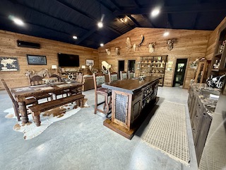 Mamemo Ranch is offered fully equipped, with an extensive list of included equipment such as tractors, skid steer, Kawasaki Mules, trailers, implements, tools, and more. Most furnishings in the home and lodge will also convey, with trophy mounts available for separate purchase.