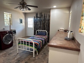 IMPROVEMENTS: The “Main House” headquarters is 2,016 sq. ft. (Per the SCAD) with 2 large bedrooms and one full bathroom. This is an entertaining paradise complete with a large living room with fireplace, wood floors, and beautiful wood carved wall accents. It has a large galley style kitchen that opens into the living room and nice size dining room. The home is stucco with a metal roof and offers a large, fenced yard with cedar stays and stucco columns. There are three beautiful arched entrances into the yard. An inviting entrance into the front, a side entrance with easy access to the large, covered carport, and one at the back. A one room bunkhouse is in the backyard with a bedroom, shower, sink, cabinetry, and washer/dryer. A large walk-in cooler is also located adjacent to the bunkhouse.