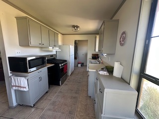 A 912 sq. ft. (Per the SCAD) single wide mobile home with 3 bedrooms, 2 bathrooms, and covered front porch. The second of two walk in coolers is located adjacent to this home.