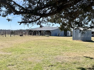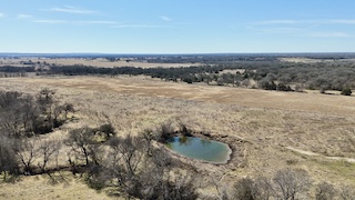 The land is fenced and cross-fenced into improved pastures, each with its own surface water. Five surface tanks are strategically positioned throughout the ranch, while Board Creek runs north to south through the property, creating a beautiful tree-lined corridor and excellent habitat for wildlife. Heavy tree cover along the creek includes mature pecans, post oaks, elms, mesquite, live oaks, and native briars, with scattered large trees dotting the pastures. Grasses consist of coastal Bermuda and native varieties, and the terrain is gently rolling with beautiful long-range views. Access is via gravel county road with an attractive pipe entrance.